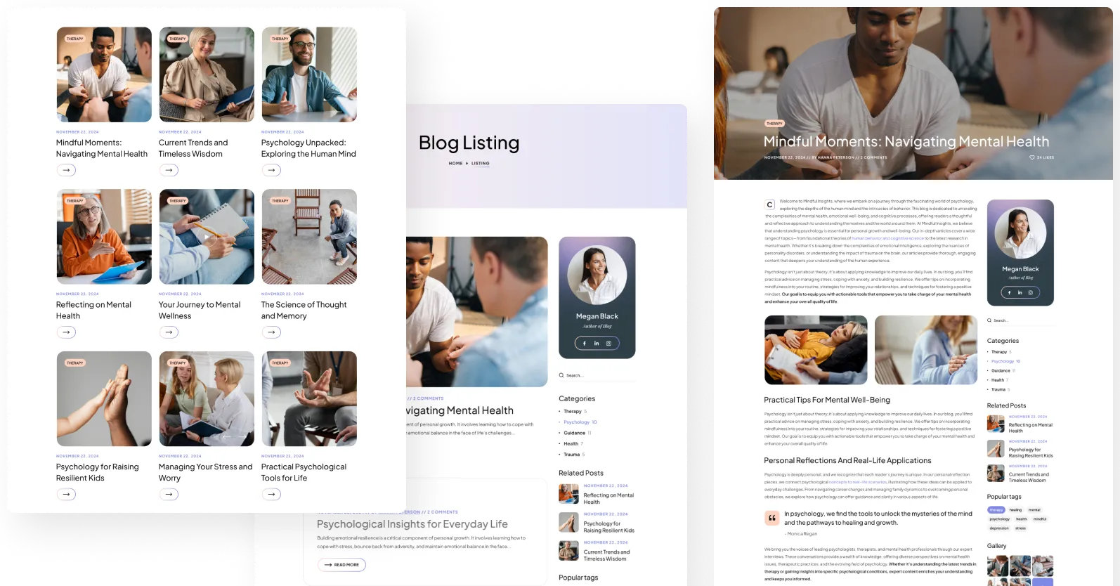 Fantastic, multiple collection of carefully designed blog lists, grids, single templates, etc.